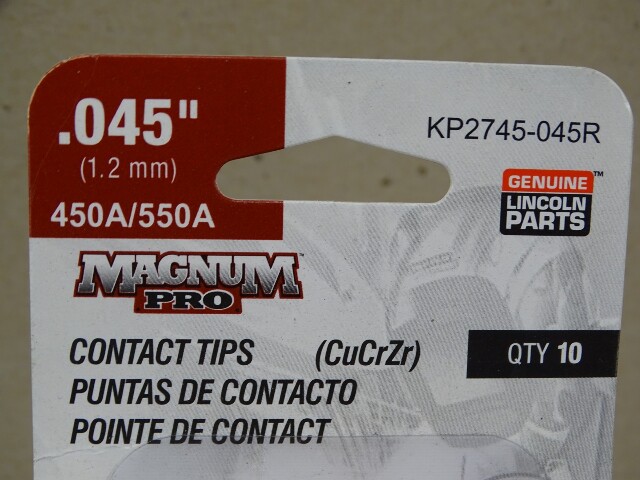 (10) Lincoln Magnum Pro Copper Plust 450A/550A Contact Tip 0.045" , KP2745-045R