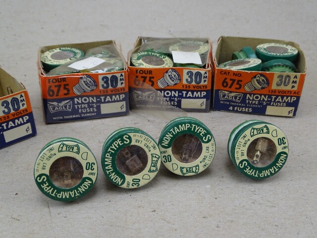 (12) Eagle 30 Amp Non-Tamp Type S Plug Fuses 125V, 675