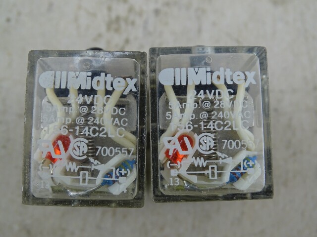 (2) Midtex 14-Pin 4PDT Relay 24VDC, 156-14C2LC