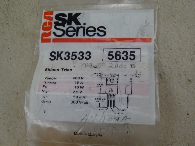(2) RCA 3-Pin TRIAC Semiconductor 400V, 16A, SK3533