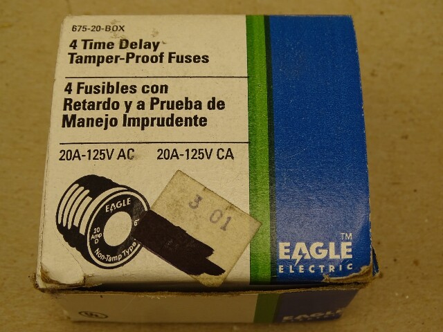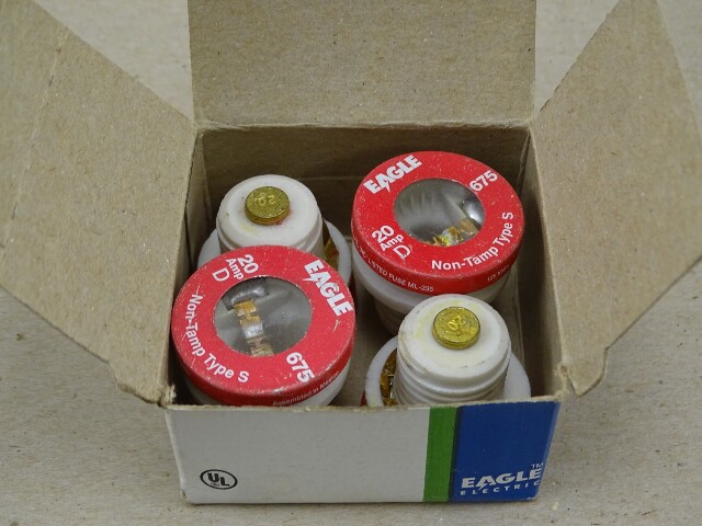 (4) Eagle 20 Amp Non-Tamp Type S Plug Fuses 125V, 675