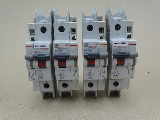 (4) GE B6 Amp Mini Circuit Breaker  120/240VAC, 1-Pole, EP101ULH