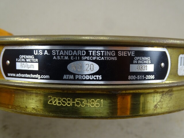 Advantech USA Standard Testing Sieve 8" 850um/.0331in, No. 20