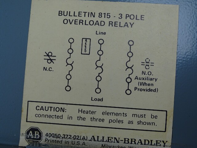 Allen-Bradley Overload Relay Panel Series K 3-Pole, 600V, 815-BAV16
