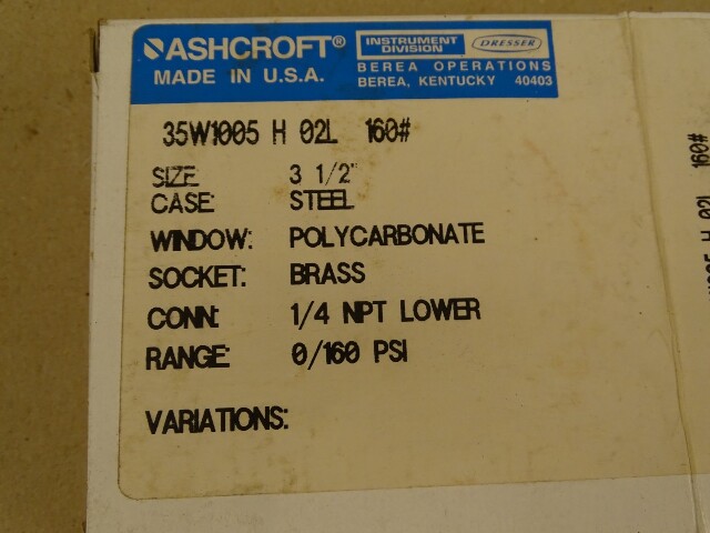 Ashcroft 3.5" Pressure Gauge 160 PSI 1/4" NPT, 35W1005H-02L-160#