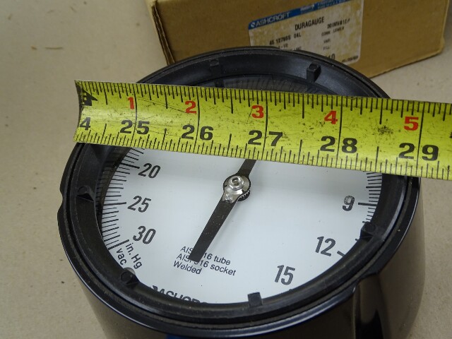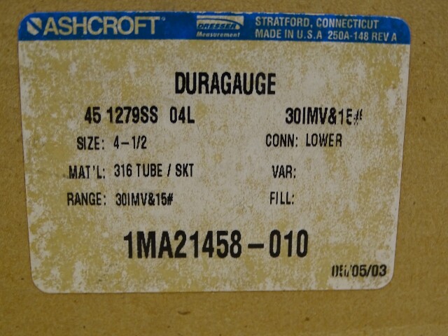 Ashcroft 4.5" Duragauge 30in. Hg Vac-15 PSI 1/2" NPT, 45-1279AS-04L-30IMV&15#