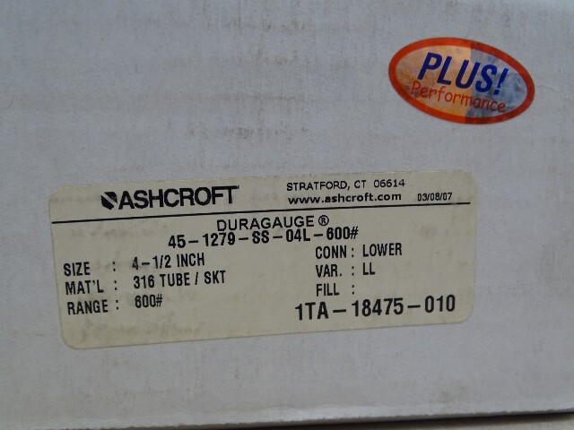 Ashcroft 4.5" Duragauge PLUS 0-600 PSI Gauge 1/2" NPT, 45-1279-SS-04L-600#