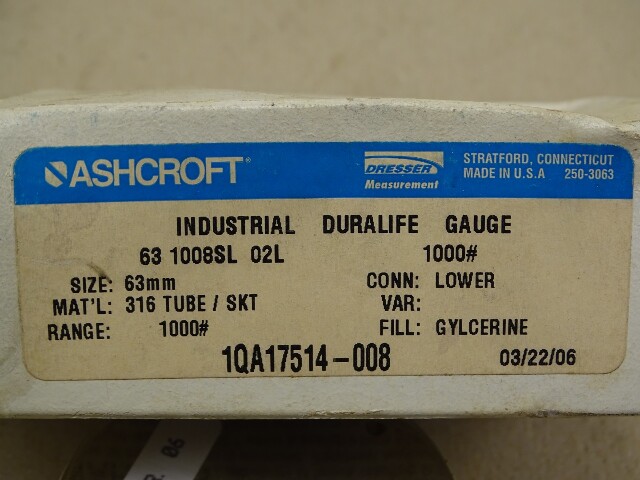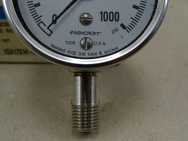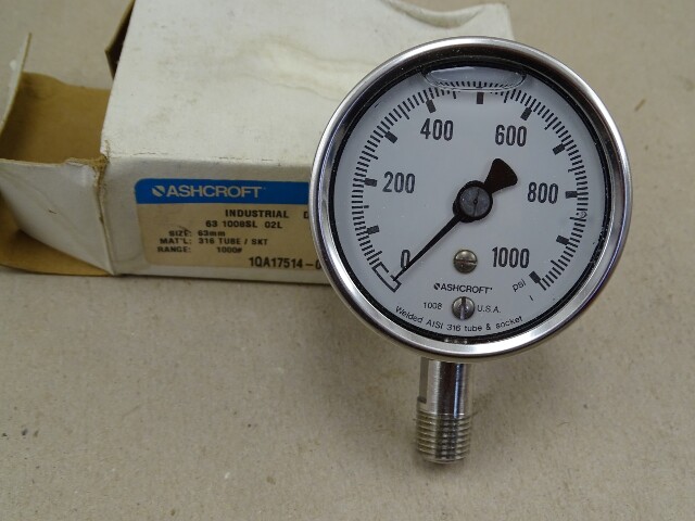 Ashcroft 63mm (2.5") Duralife Gauge 1000 PSI 1/4" NPT, 63-1008SL-02L-1000#