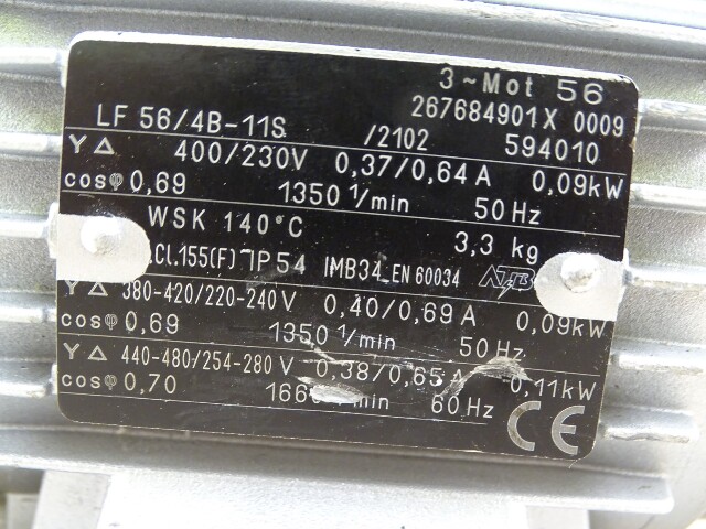 ATB Gear Motor 20:1 Multi-Volt, 3PH, 50/60HZ, LF56/4B-11S