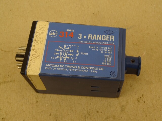 ATC 3 Ranger Time Delay Relay 1-100 Sec 7A-120/240VAC, 3A-30VDC, 314B134Q2C