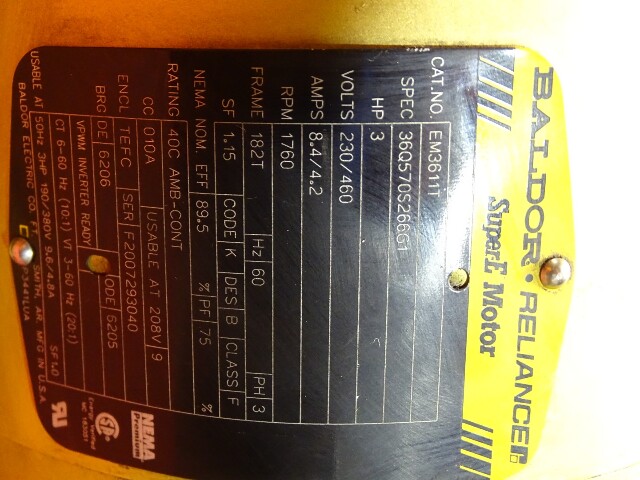 Baldor Reliance SOLD 3HP Electric Motor 3PH, 230/460V, 1760RPM, EM3611T
