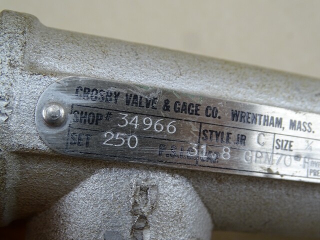 Crosby Pressure Relief Valve 3/4 x 1 Style JRC 250PSI, 31.8GPM, 70°F, 34966