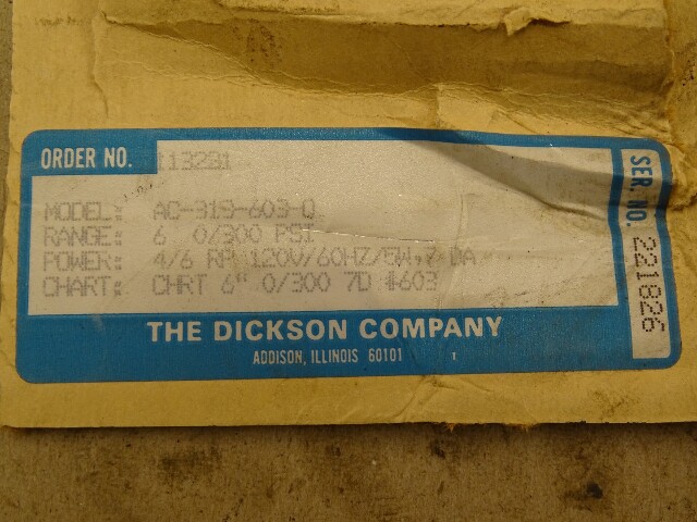 Dickson Chart Recorder w/ Chart Paper , AC-313-603-0