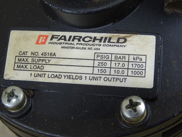 Fairchild Pneumatic Volume Booster 1:1 Ratio 250 PSIG Max Supply, 4516A