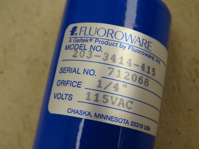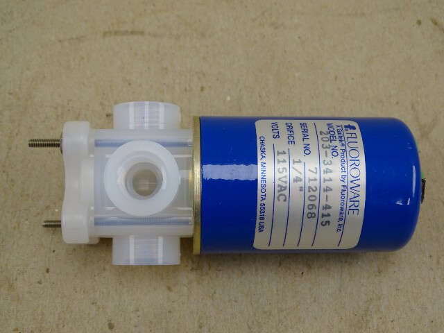 Flouroware 1/4" 3-Way PFA Solenoid Valve 115VAC, 203-3414-415