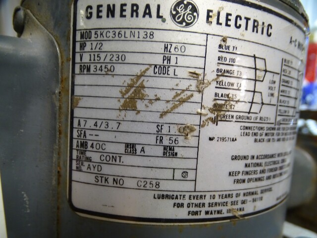 GE 1/2HP Electric Motor 1PH, 115/230V, 3450RPM, FR 56, 5KC36LN138