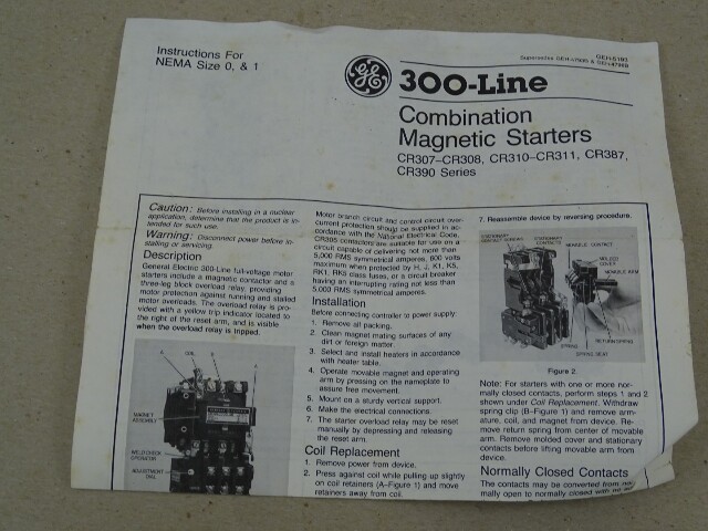 GE 300-Line Control Combination Magnetic Starter 30A, 600V, Size 0 & 1, CR308