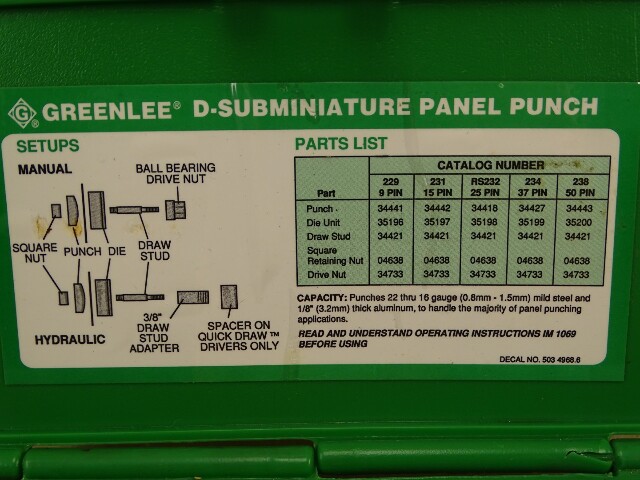 Greenlee 25-Pin D-Subminiature Panel Punch , RS232