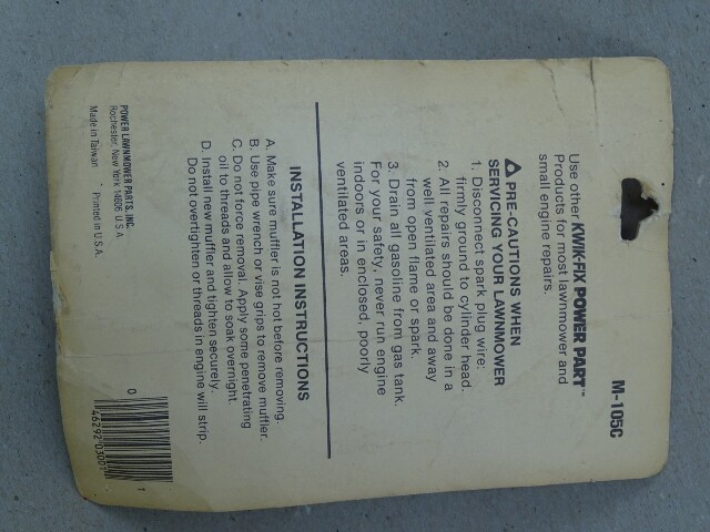 Kwik-Fix Power Muffler for 1/2" Exhaust Pipe , M-105C