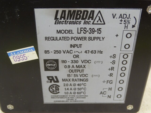 Lambda Regulated Power Supply 15VDC Output, LFS-39-15