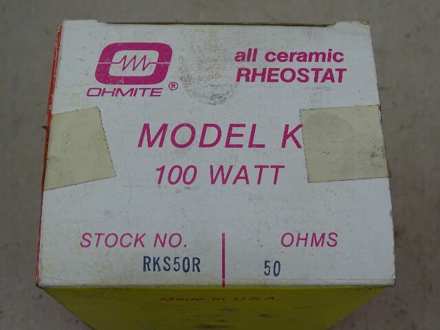 Ohmite 100 Watt Model K Rheostat 50 Ohms, RKS50R