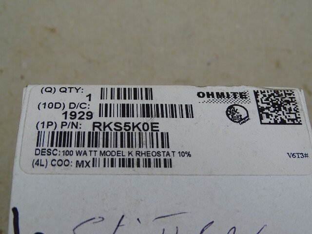 Ohmite 100 Watt Model K Rheostat 5K Ohms, RKS5K0E