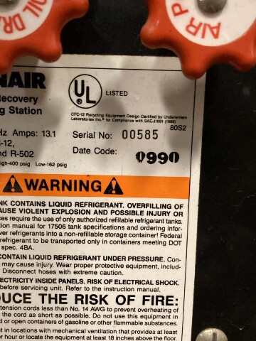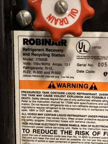 Robinair Refridgerant Recovery and Recycling Station 115V/60Hz, 17500B