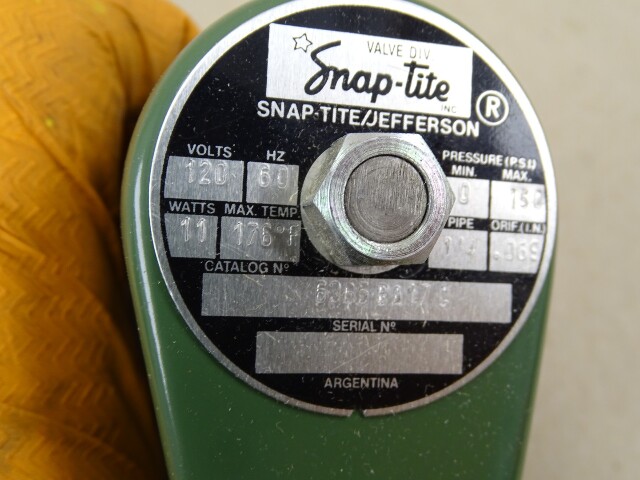 Snap-Tite Solenoid Valve 0-150 PSI .069 Orifice 1/4" NPT, 120V/60Hz, 6365 BA17C