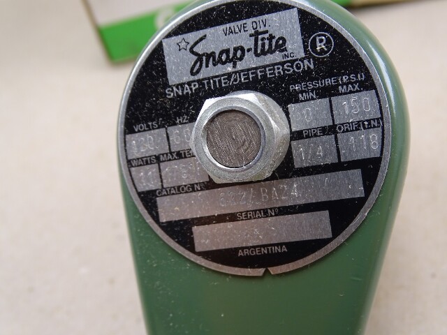 Snap-Tite Solenoid Valve 0-150 PSI .118 Orifice 1/4" NPT, 120V/60Hz, 6227BA24