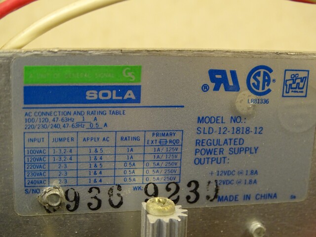 Sola Power Supply 12VDC 1.8A, SLD-12-1818-12