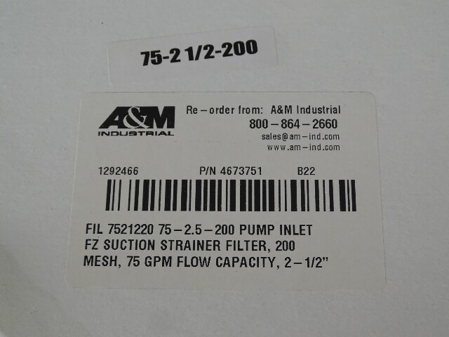 Suction Strainer Filter 200 Mesh, 75 GPM, 2-1/2", 7521220