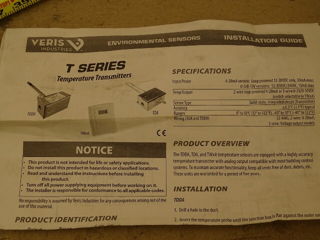 Veris Outside Temperature Sensor Transmitter -40 to 122°F , TOAM10
