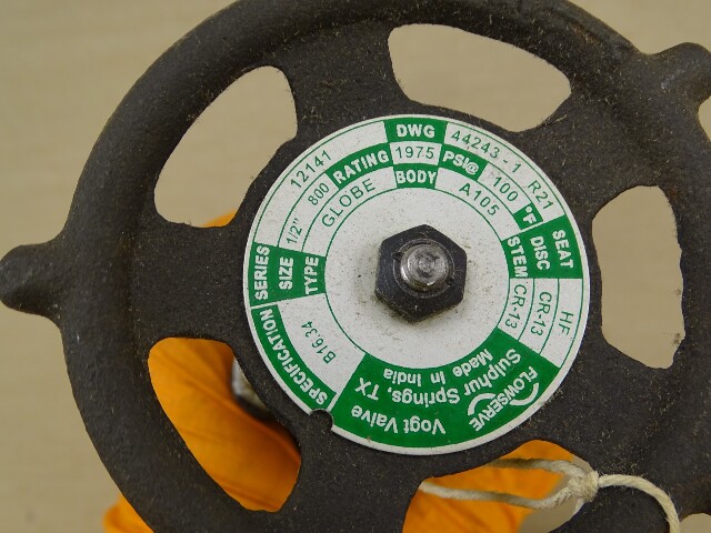 Vogt Globe Valve 1/2" NPT Class 800 12141, 44243-1 R21